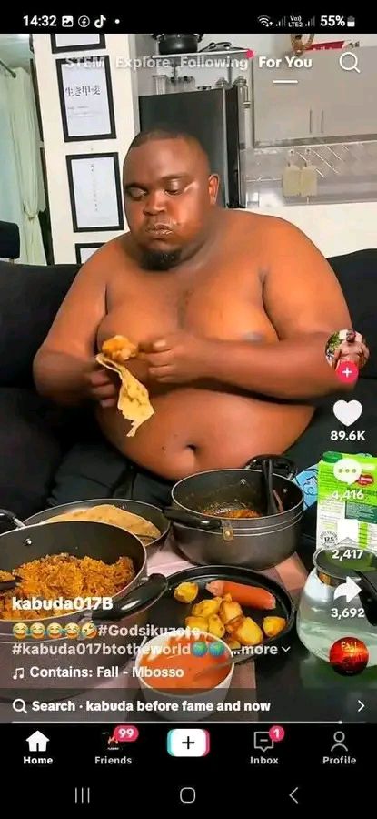 Kabuda rose to fame for his distinctive body size and slick dancing moves, quickly carving out a unique space in the content creation world. In recent months, he has leaned into his image, using his impressive size and love for food as key elements of his personal brand. He frequently appears in advertisements featuring large portions of food, which not only showcase his indulgent lifestyle but also reinforce his persona as an unapologetically confident influencer.