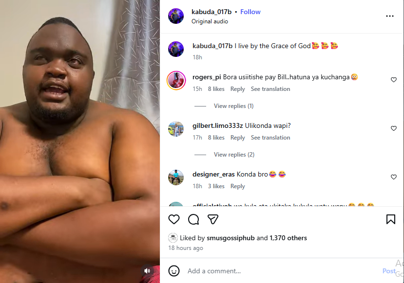His focus on self-acceptance and body positivity comes amid criticism from fans who reacted to a recent post showing him enjoying a massive plate of food. Some followers drew comparisons to late personalities whose health complications were linked to their body size, raising concerns over Kabuda’s lifestyle. Despite this, he continues to assert control over his own choices.