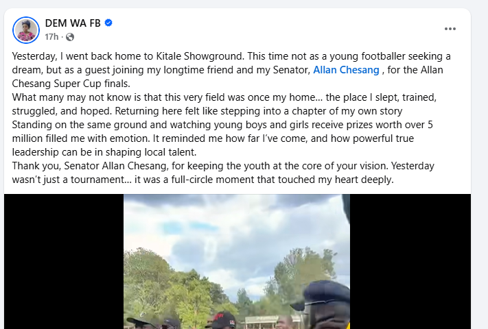 In her post, she praised Senator Allan Chesang for prioritising youth empowerment and recognising local talent through platforms like the Super Cup. She noted that the event demonstrated real leadership, especially when it comes to building opportunities for young people.