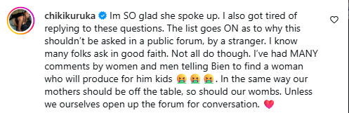 Chiki Kuruka Calls Out Pressure on Women to Have Children